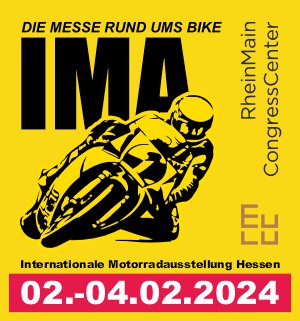 Die Internationale Motorradausstellung Hessen (IMA) - die neue Motorrad Messe im Rhein-Main-Gebiet direkt zum Saisonstart - findet nun von Freitag bis Sonntag, 02. bis 04. Februar 2024 im Wiesbadener RheinMain CongressCenter statt.